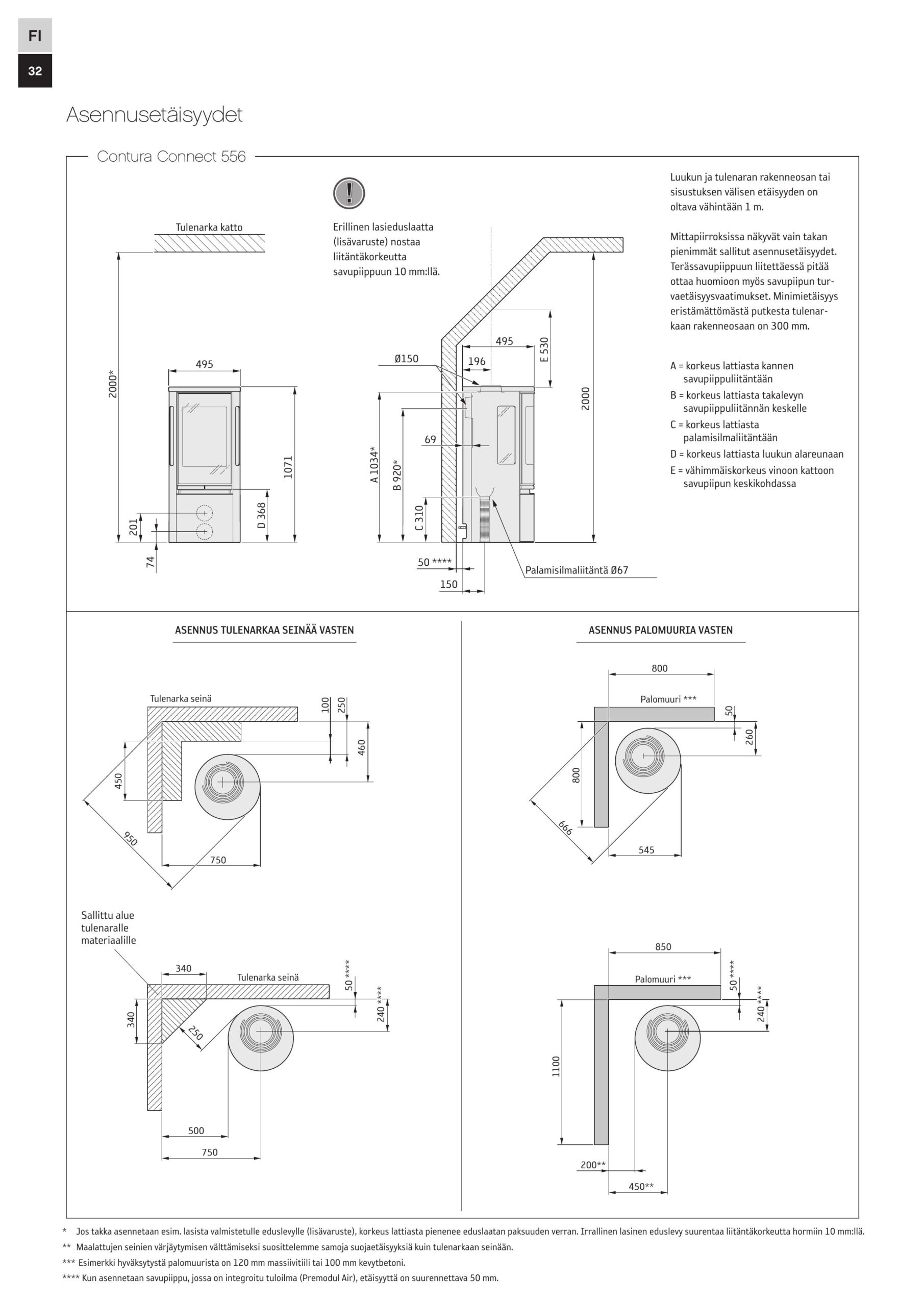 *Tulituote Oy pidättää oikeudet muutoksiin. Tarkista aina suojaetäisyydet ennen asennusta suoritustasoilmoituksesta.