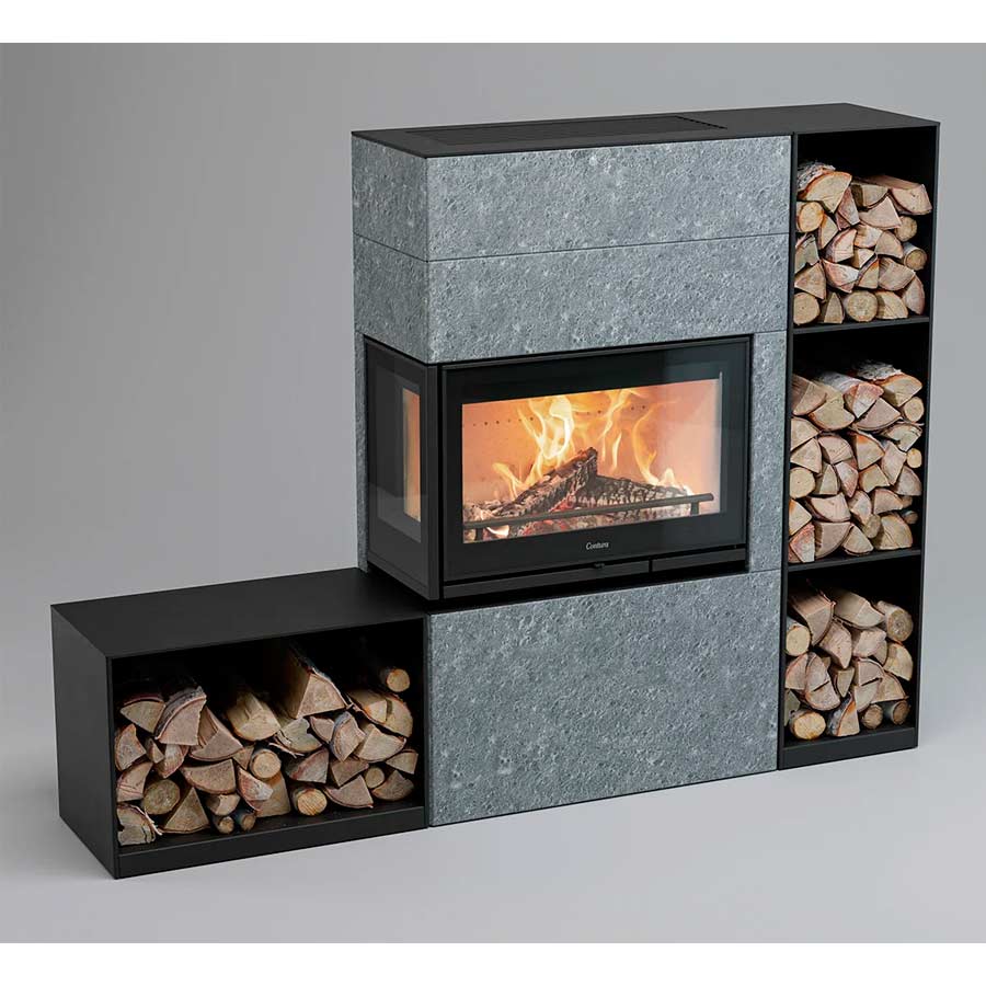 Contura MyCuben T palotila on suunniteltu tarjoamaan korkea hyötysuhde ja tehokas palaminen. Voit valita lisävarusteeksi myös lämpöä varastoivan Powerstone-lämpömakasiinin. Yksi sarja painaa 45 kg ja niitä on mahdollista laittaa takkaan useampia. lämpömakasiinin ansiosta takka varastoi lämpöä pidempään.