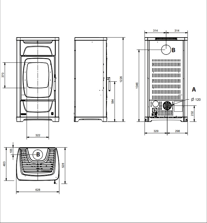 Mitat (L x K x S): 628 x 1226 x 527 mm mm