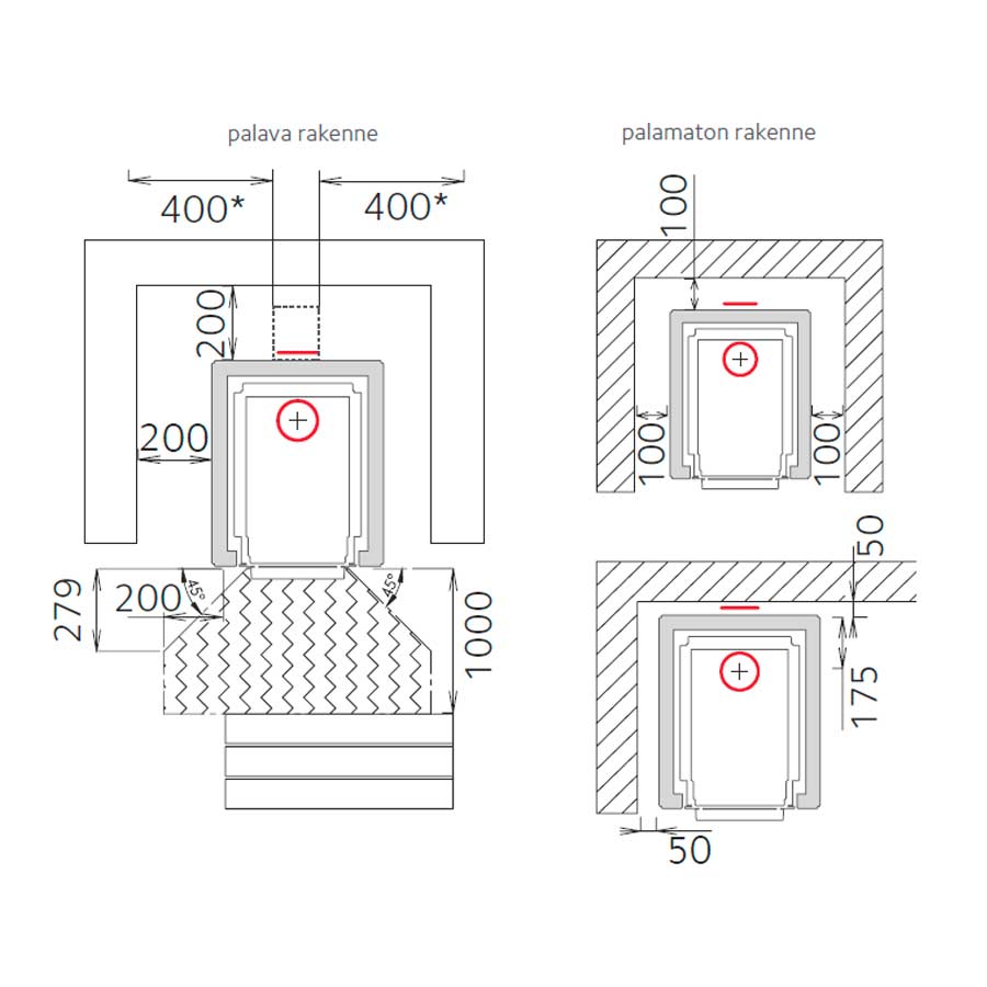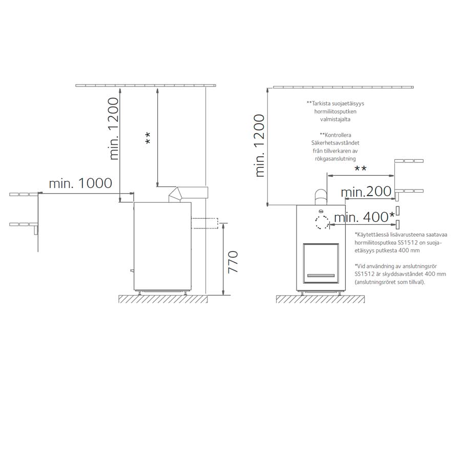| Savuaukon sijainti takana: lattiasta keskelle reikää, mm |