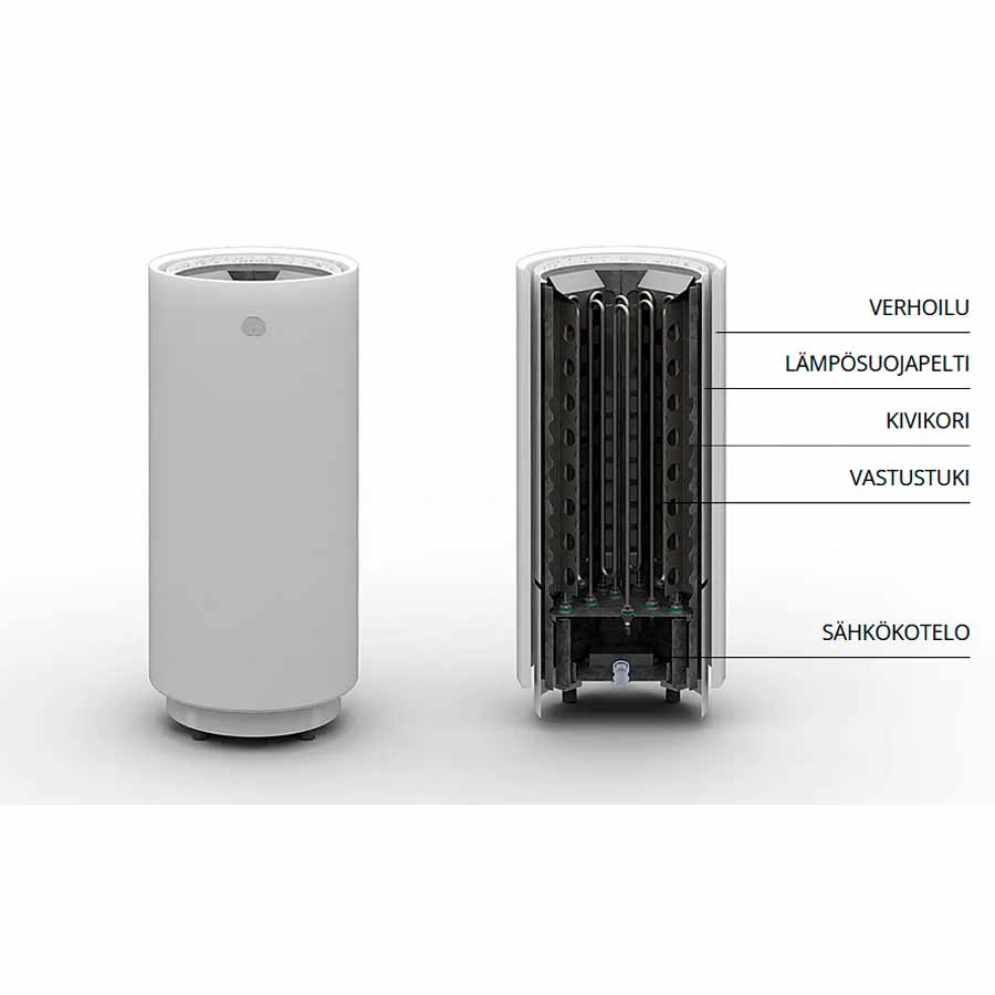 Haluamme tarjota sinulle parhaan mahdollisen saunakokemuksen uusilla ja parannetuilla kiukaillamme. Erottautumistekijämme ja periaatteemme ovat säilyneet, mutta olemme tehneet merkittäviä visuaalisia ja teknisiä parannuksia. Usva-kiukaan monikerrosrakenne pitää kiukaan pinnan viileänä ja kiukaan suojaetäisyydet pienenä. Kiuas on helppo integroida lauteisiin, sillä se ei vaadi suojakaiteita, ja sen tyylikäs muotoilu sopii saumattomasti kaikenlaisiin sisustuksiin. Kiukaan klassinen valukivipinta on ekologinen, sekä tarjoaa pitkäikäistä ja kestävää estetiikkaa.
