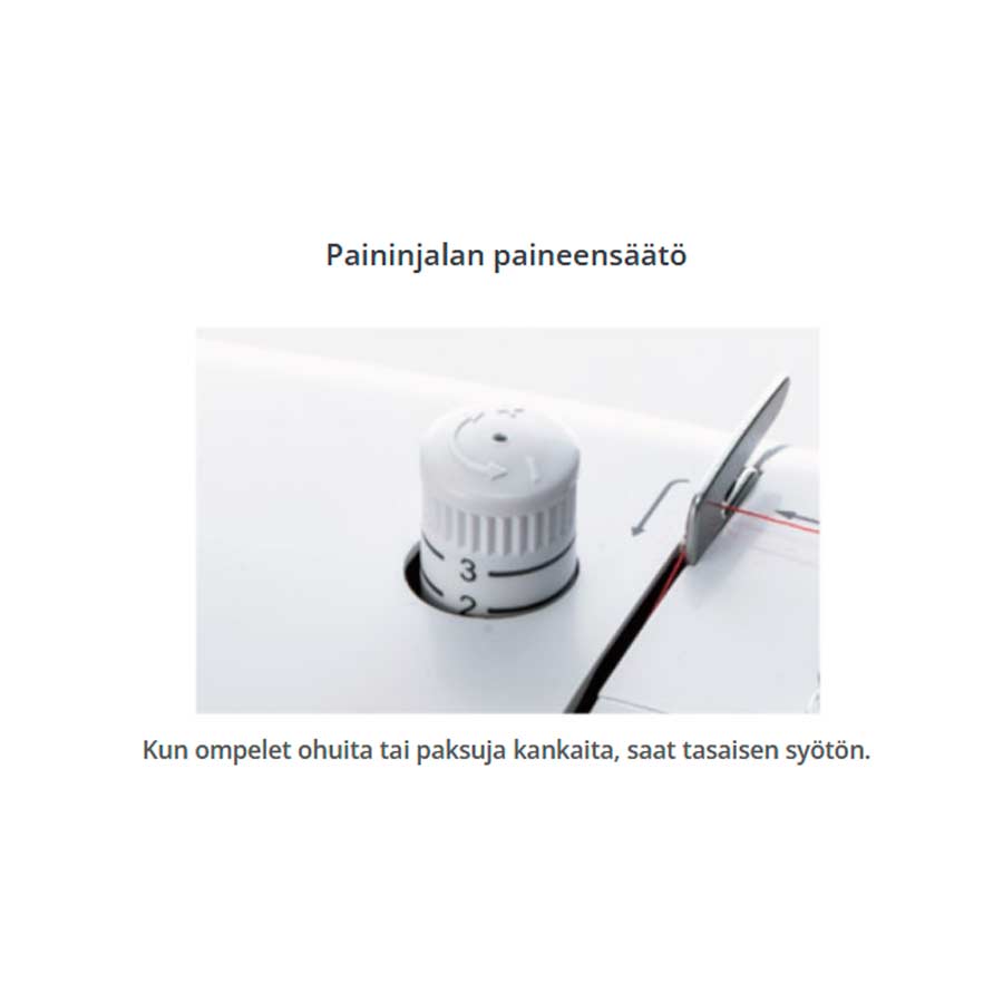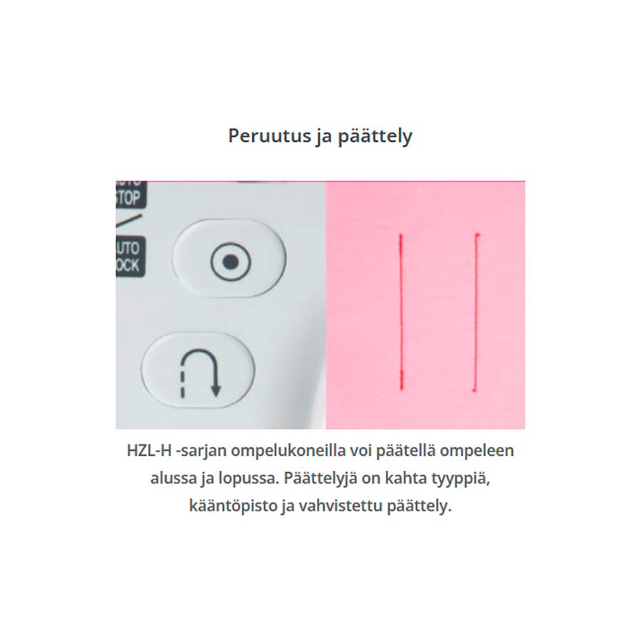 Erittäin yksinkertainen ja helppo käyttää! 40 ommelta suoraan etupaneelista. Start-stop, nopeudensäätö ja neula-stop. Pikaohjeet opastavat langoituksessa ja kaksi eri päättelyä varmistavat siistin viimeistelyn.