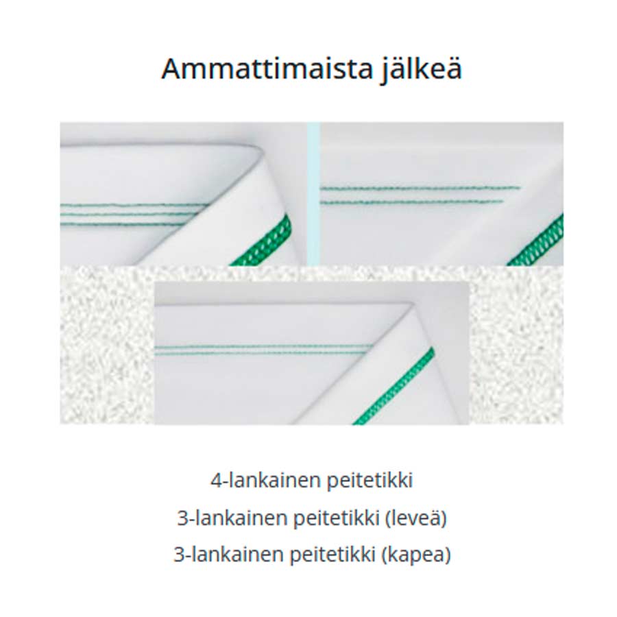 Markkinoiden halutuin peitetikkikone ainutlaatuisella paininjalalla ja syöttömeknismilla joka takaa hyppytikkivapaat saumat – nyt entistä parempana! Kiinteä kirkas LED-valo ja vakiotarvikkeena tuleva helmankääntäjä vievät sinut seuraavalle tasolle.