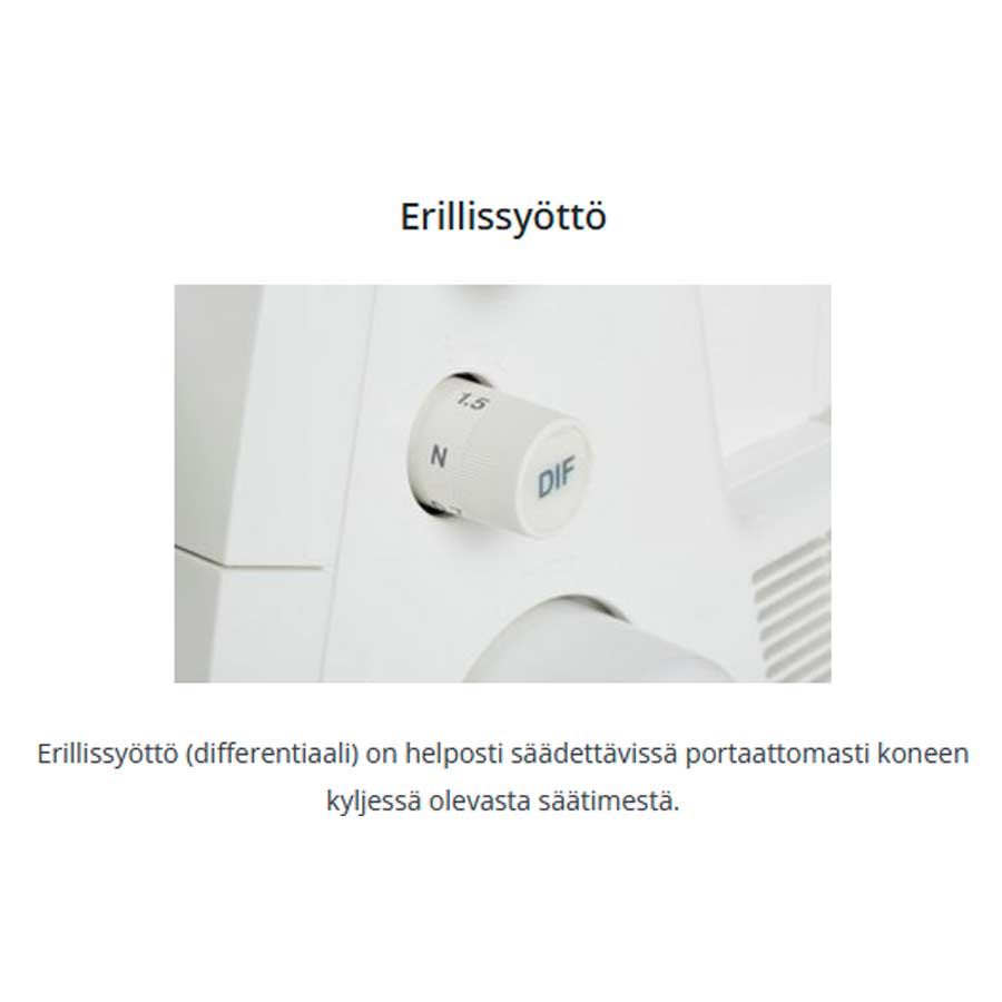 Kone on helppokäyttöinen, tehokas ja soveltuu sekä harrastajalle että ammattilaiselle. Differentiaalisyöttö pitää kankaat suorina, ja langoitus on vaivatonta automaattisen kiristimen vapautuksen ansiosta.
