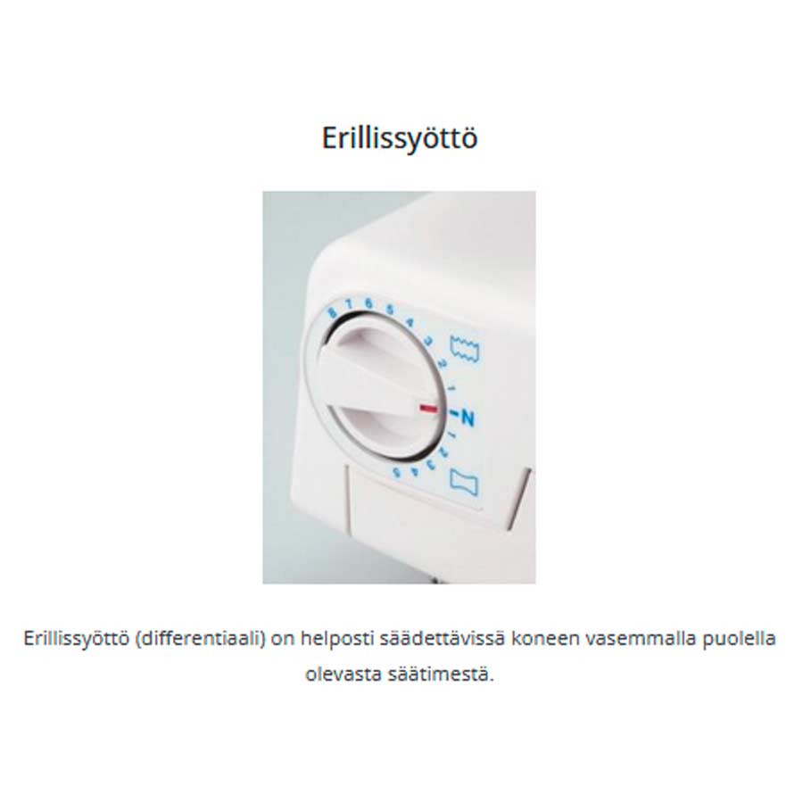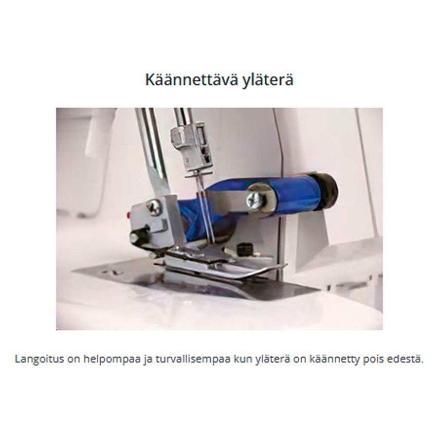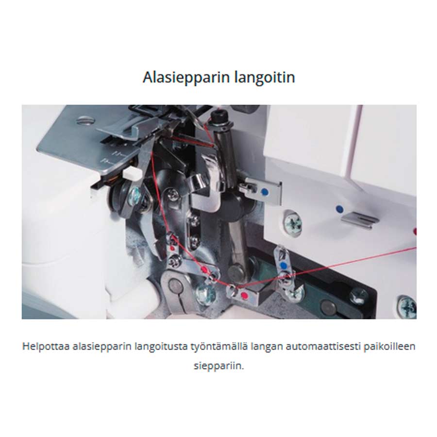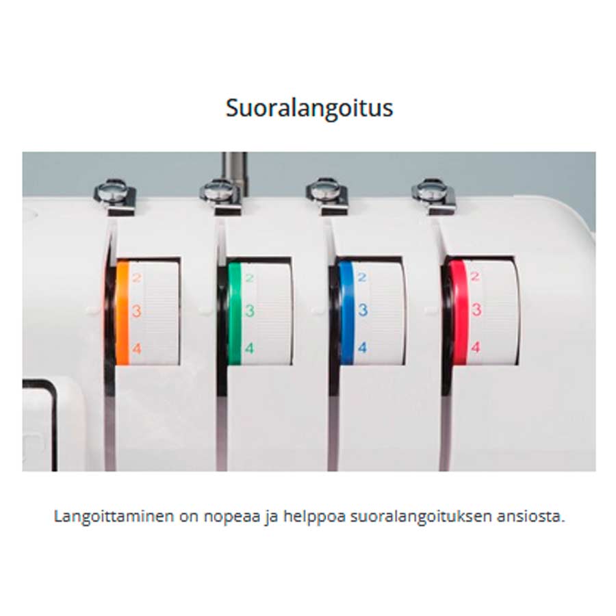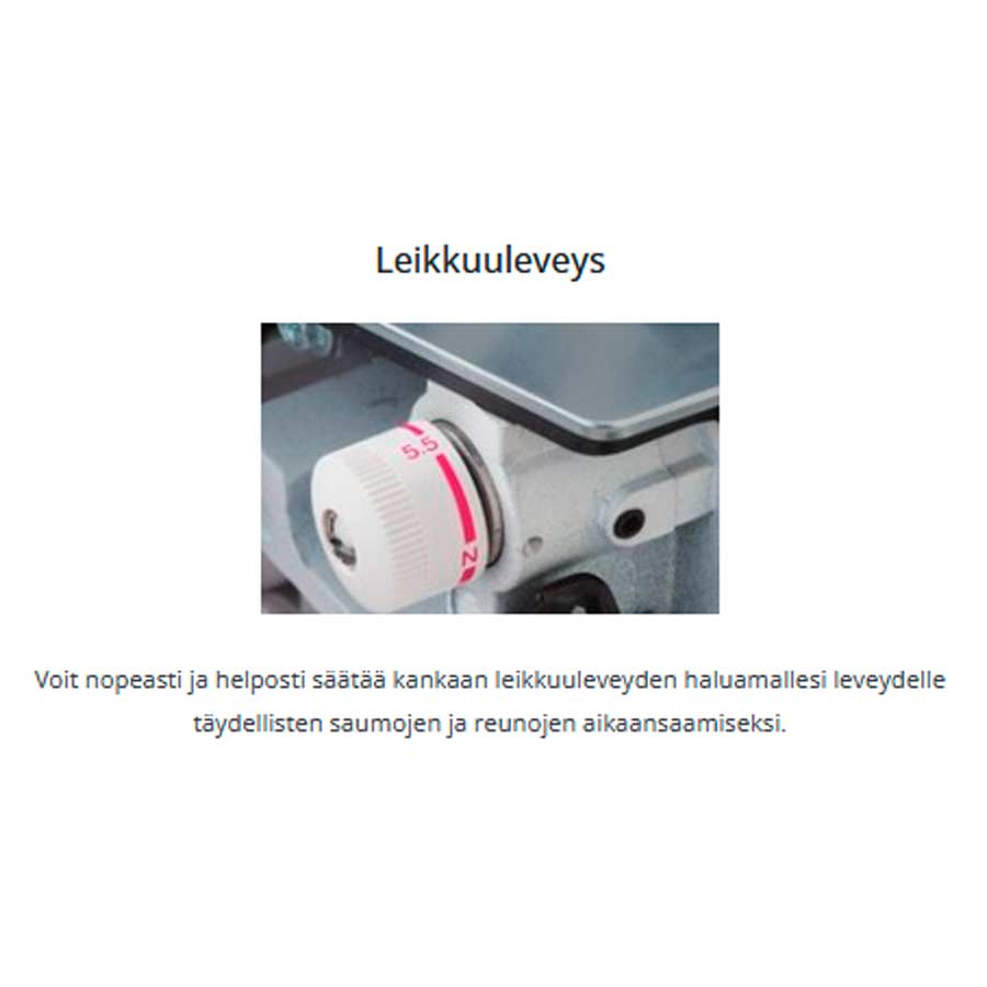 2 neulainen 3/4-lankasaumuri automaattisella rullapäärmeellä ja erillissyötöllä. Aloittelijankin helppo käyttää!