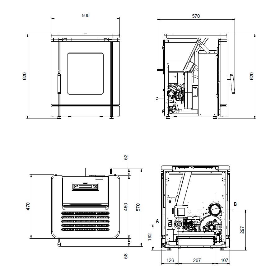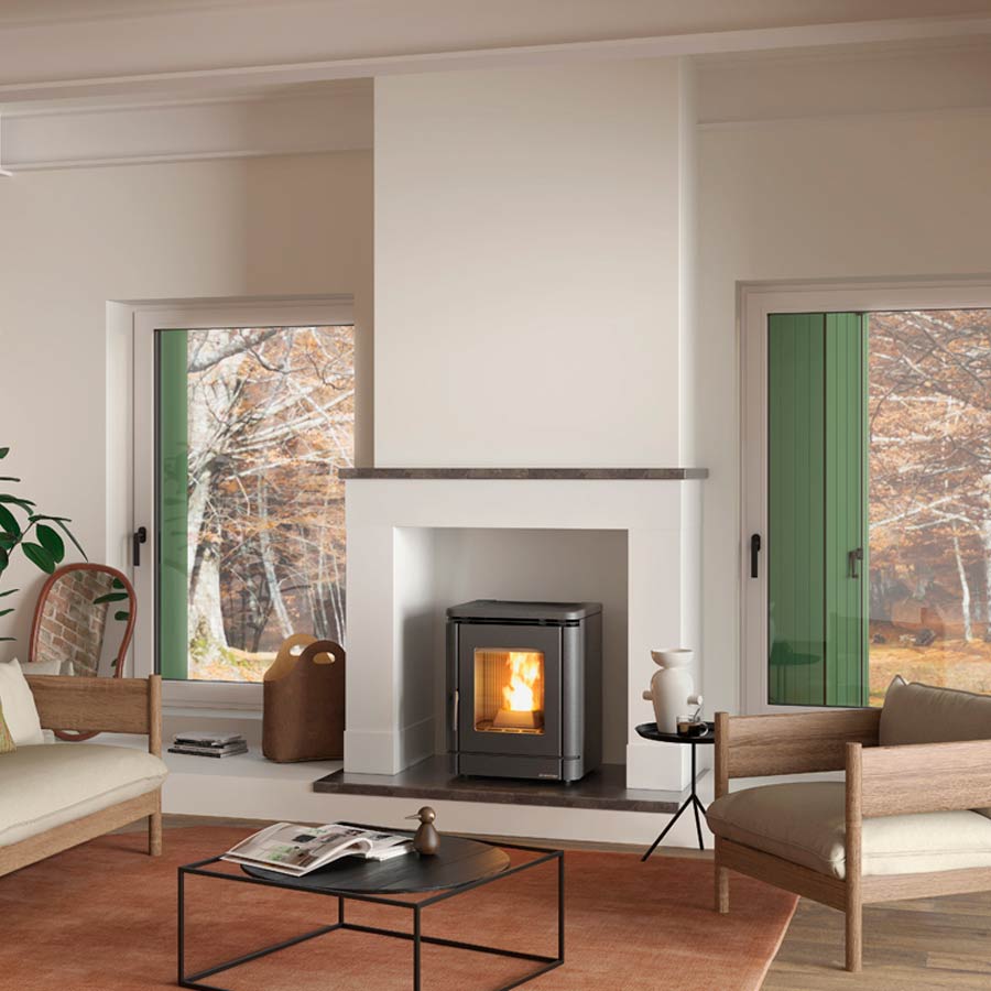 Tuotteen vakio-ominaisuksiin kuuluu Glass Cleaning system, jossa ilmavirtaukset on suunniteltu pitämään takan tulipesän lasin mahdollisimman kauan puhtaana. Nopeussäätyvä savukaasumoottori mittaa jatkuvasti nopeutta. Pellettisäiliössä mekaaninen turvatermostaatti, joka pakkokatkaisee pelletinsyötön mikäli säiliön lämpötila nousee liian korkealle. Alipaineanturi tarkkailee hormin vetoa mittaamalla takan läpi virtaavaa ilmaa. Viikko-ohjelmoinnilla mahdollisuus asettaa takka syttymään ja sammumaan haluttuina aikoina. Automaattinen sytytys sytytysvastuksen avulla, paina takka käyntiin napista tai aseta haluttu huonelämpötila, jota takka noudattaa syttymällä ja sammumalla tarpeen mukaan.