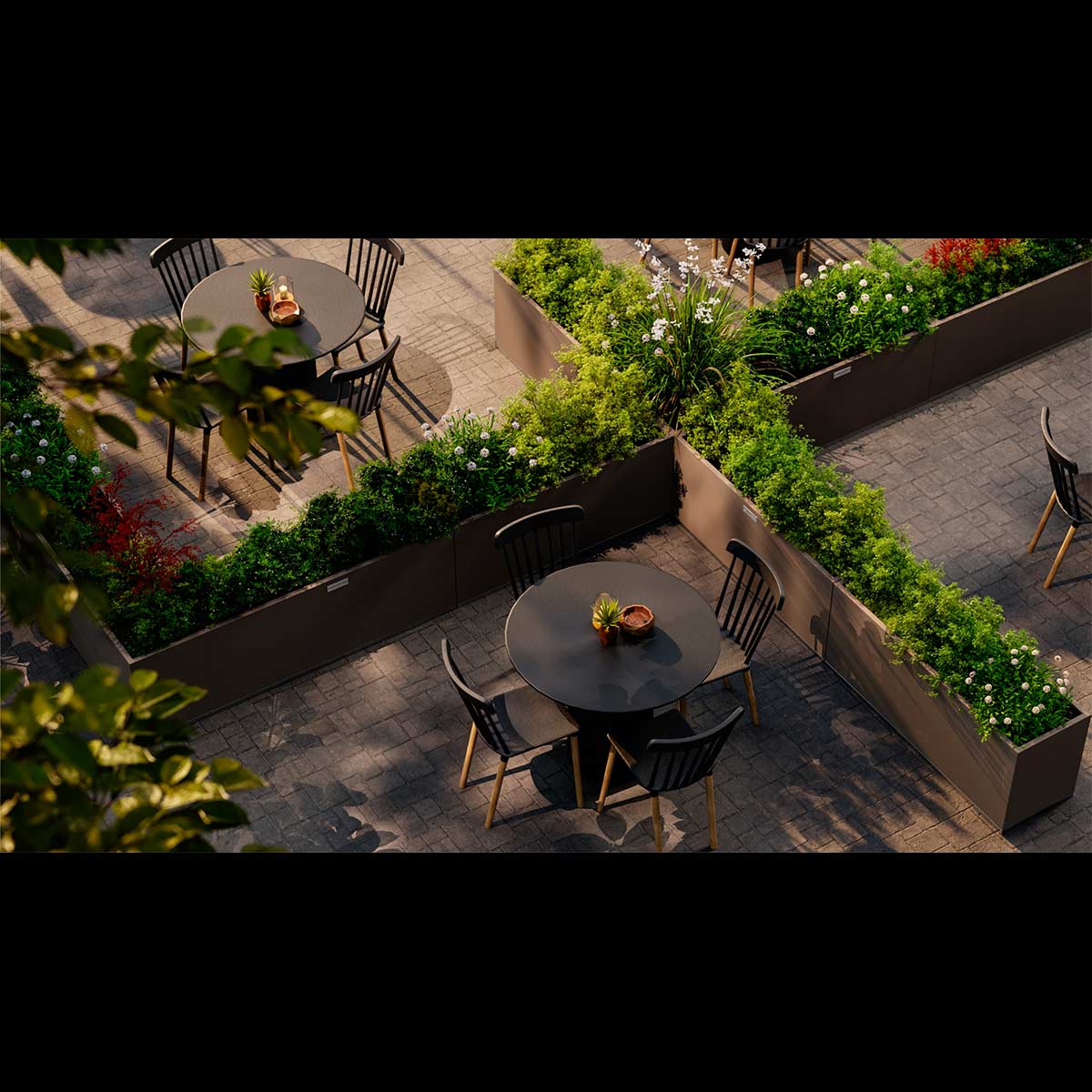 COYOTTO-ruukuissa käytetty sinkitty teräs tekee niistä erittäin kestävät ja säänkestävät. Ruukun seinämien jauhemaalaus suojaa niitä entisestään korroosiolta ja UV-säteilyltä. Sinkittyjen ruuvien ansiosta ruukut kootaan tiiviiksi ja tukeviksi rakenteiksi. Kasvien hyvinvointia varten ruukkujen pohjassa on valuma-aukot, jotka poistavat ylimääräisen veden tehokkaasti. COYOTTO-ruukut ovat saatavilla eri kokoisina, toimitustuotteena harmaana, sekä mittatilaustyönä laajassa eri värivalikoimassa, joilla voit luoda ainutlaatuisia ja eloisia kokonaisuuksia – olipa tyylisi hillitty tai värikäs.