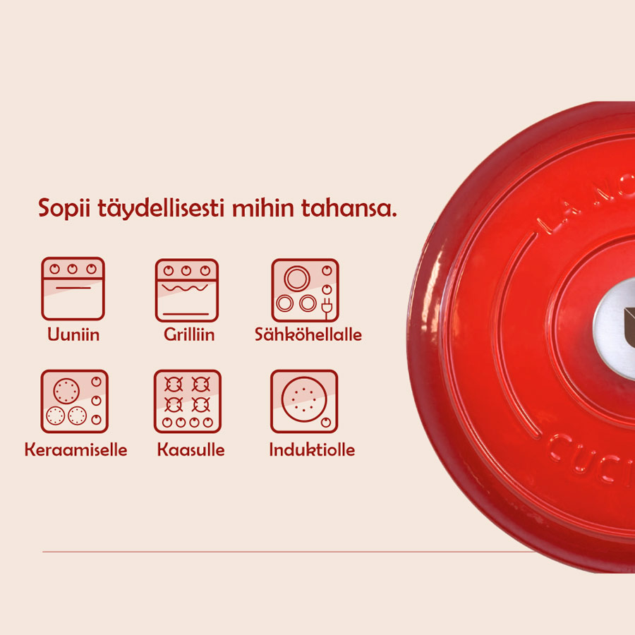 Käyttö: Uunissa, Grillissä, Sähköliedellä, Keraamiliedellä, Kaasuliedellä, Induktioliedellä