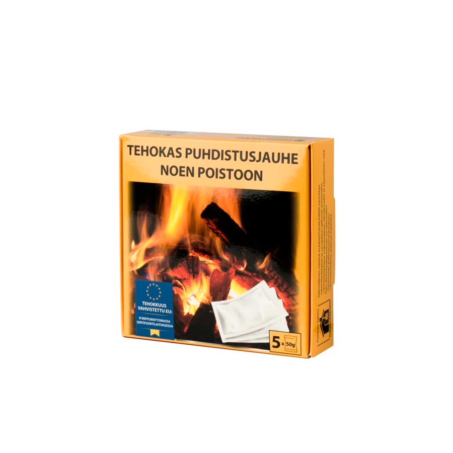 Käyttöohje: Jauhepakkaus lisätään kokonaisena sytytyspuiden päälle ennen tulisijan sytyttämistä. Puhdistusjauhetta ei saa käyttää mikäli savupiipussa ei ole tulisijalle riittävää vetoa.