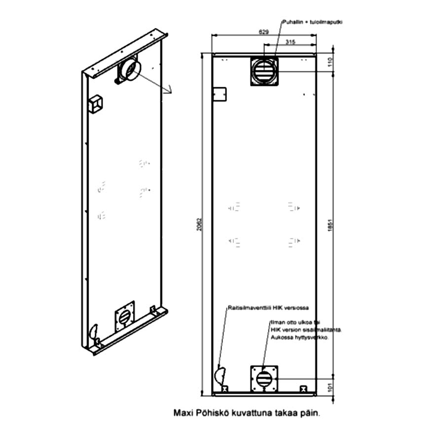 Käännettävä puhallin → imu sisältä ulos