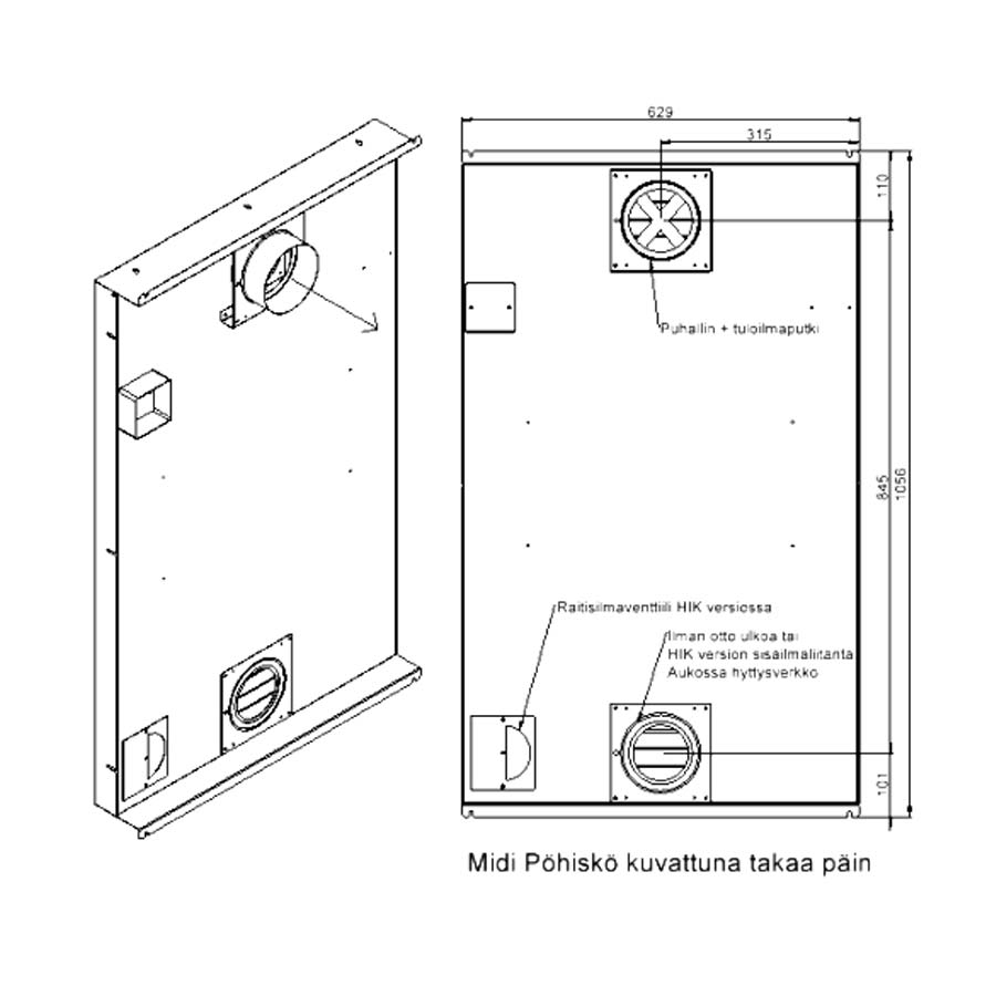 Keräimen mitat (lev.kork.syv.): 629x1056x90mm, paino 12kg.