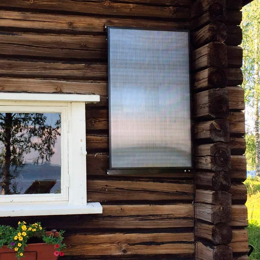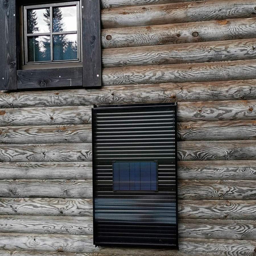Ulkoyksikkö, jossa aurinkopaneeli sekä puhallin